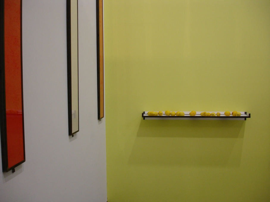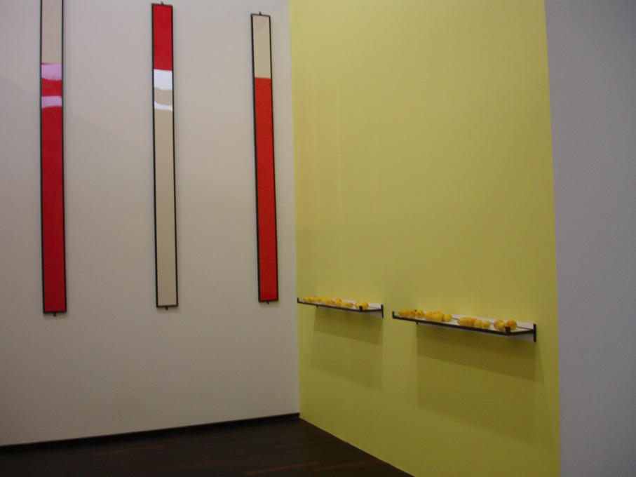 Enduit et peinture blanche. Réalisation de la gamme colorée de l’œuvre in situ.