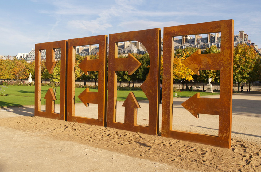 Régie technique. Coordination entre les différents interlocuteurs (artistes, galeries, musée du Louvre et commanditaire). Réalisation des mises à distance en acier thermolaqué noir brillant.