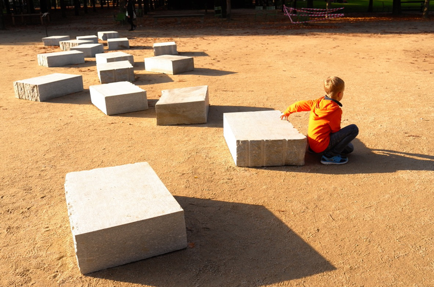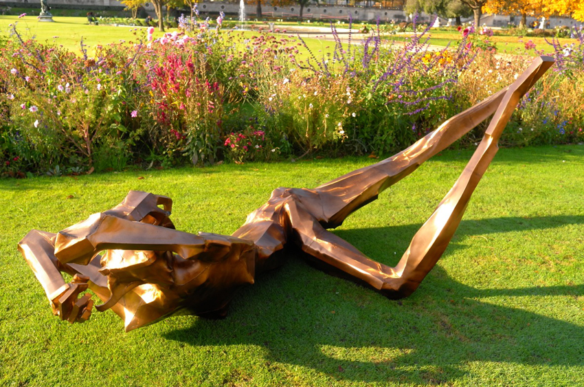 Mise en œuvre de l’exposition de sculpture monumentale dans le jardin des Tuileries.